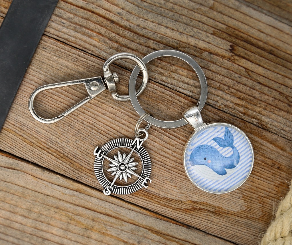 Maritimer Schlüsselanhänger mit Cabochon und kleinem Kompass.